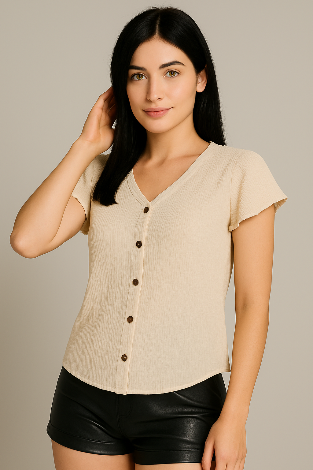 La Blusa Verona Botón Visto – Creep Premium es una pieza esencial elevada al nivel de lujo.